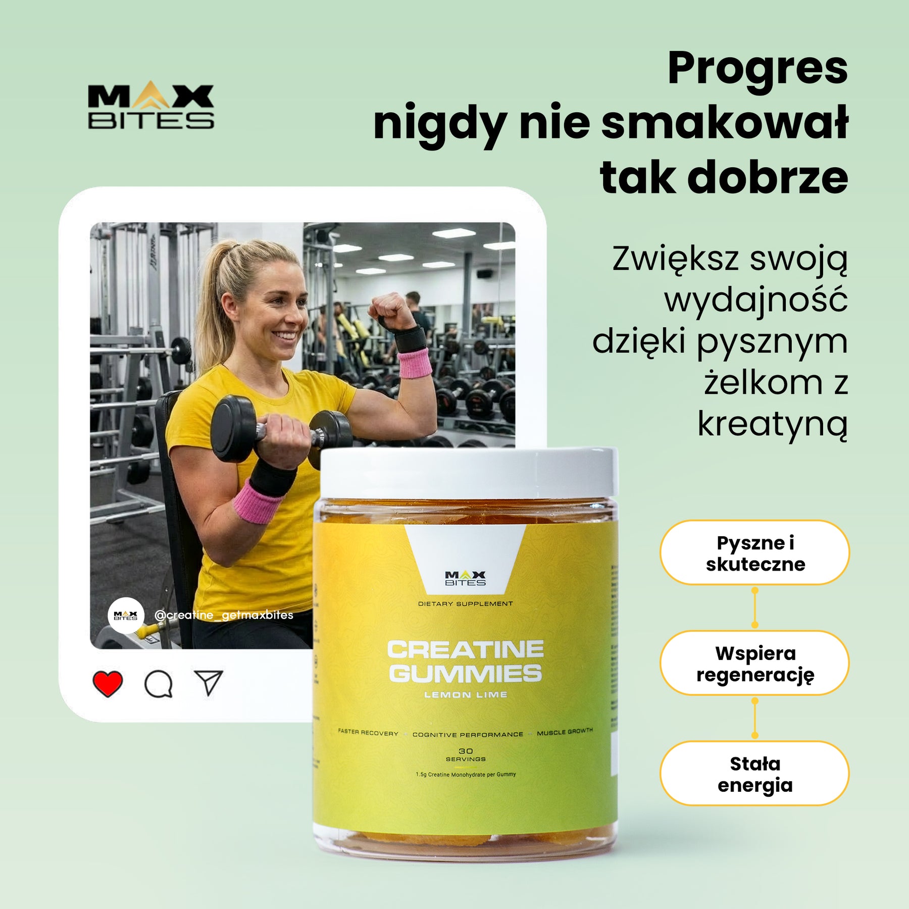 Max Bites super tasty gummies turn taking creatine into a convenient, enjoyable part of your routine 😋. In just two gummies you get a daily dose of creatine monohydrate that helps you maintain energy, support muscles, and keeps your body performing at its best 👌.