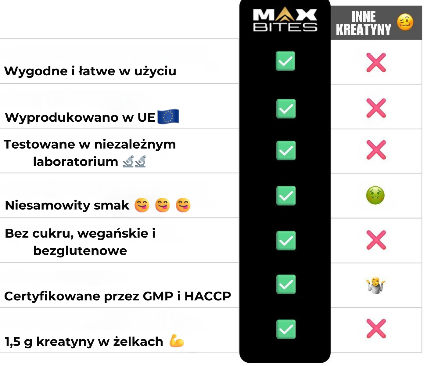 Żelki kreatynowe Max Bites to smaczny i wygodny sposób na codzienne wsparcie zdrowia i energii. Łączą wysokiej jakości składniki z łatwością użycia, dzięki czemu stanowią proste uzupełnienie codziennej rutyny.
